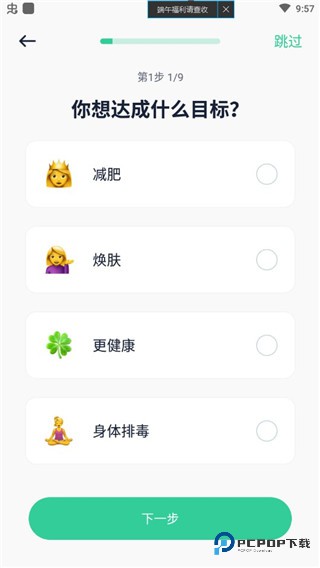 4、在「减脂 / 塑形 / 控糖 / 排毒」四大目标中单选选项。