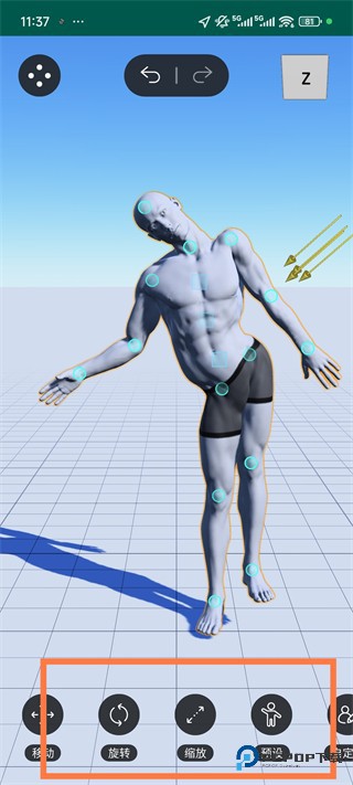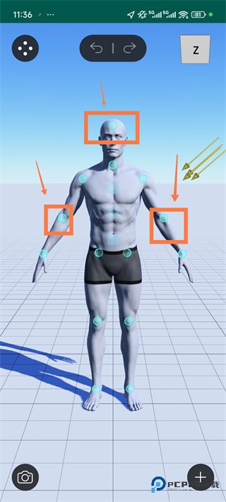 4、拖拽人偶上的控制点摆造型.我们的物理引擎允许您像真正的素体人偶一样操纵3D人偶模型,并自动将其调整为您想要的动态姿势。
