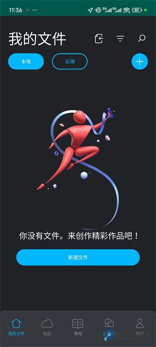 1、下载后,进入首页,点击新建文件。