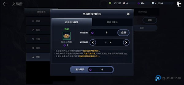 自动预约购买: 设置预约后,等这件物品出现在交易所时,系统会在所有预约的玩家中随机抽取一位幸运儿购买成功。(拼手气)