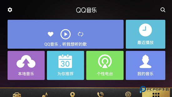 1、在本站下载安装QQ音乐车机版,可以看到当前播放音乐、最近播放、本地音乐、为你推荐、个性电台和我的音乐六大版块。再加上左上方的设置,和右上方的搜索,这样,所有的功能在首页清晰呈现;