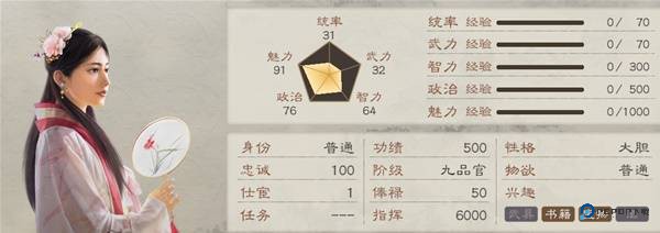 智力型老婆,自带1级天启很有用,83智搭配上全2级的智谋栏用来搞计谋破坏是可以的。