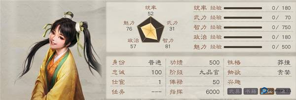 85政治+83魅力,除了警备之外的内政特技都有2级,显然是种田系人才。