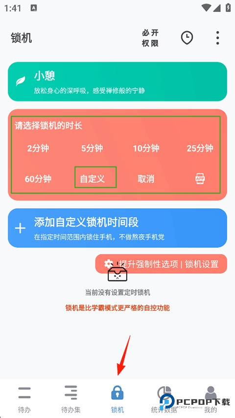 1、打开番茄ToDo,点击锁机-自定义锁机时长;