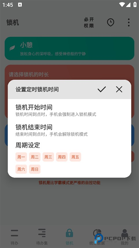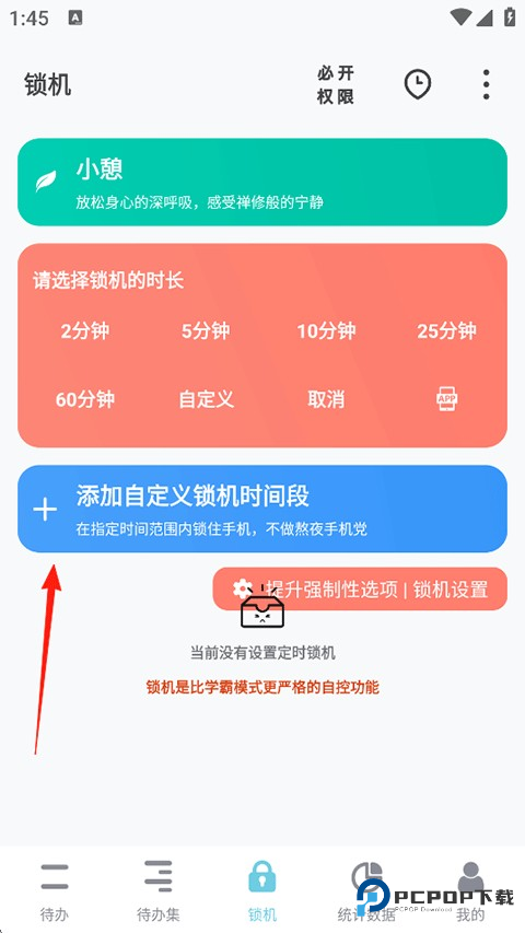 4、回到锁机页面,您还可以添加自定义锁机时间段;