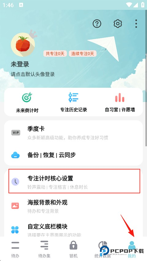 1、点击我的-专注计时核心设置;