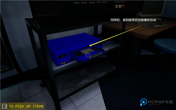 拿到磁带后,放到右边的录像机中,观看视频(可以跳过)。