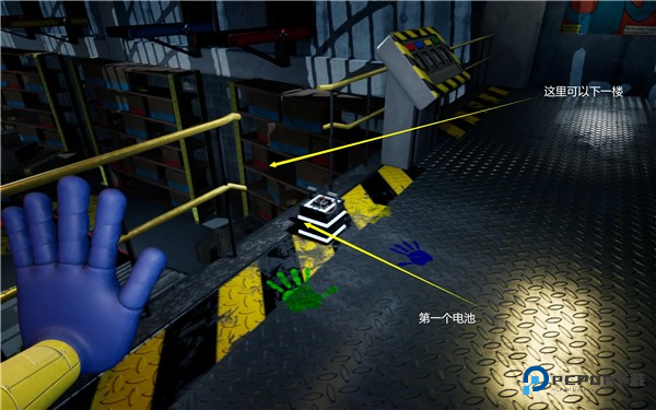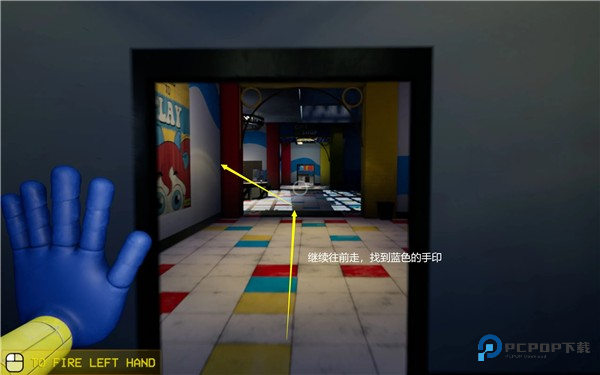 拿到蓝手后,回到起点的位置正对柜台的后面,可以进入下一个区域。