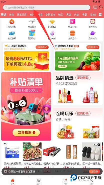 3、进入首页后可通过搜索框查找商品,或粘贴产品口令直接跳转至商品页面。