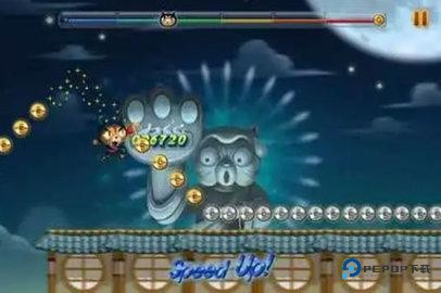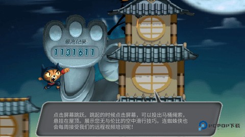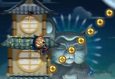 3、轻轻点击一下屏幕,我们的忍者猫就会跳起来。