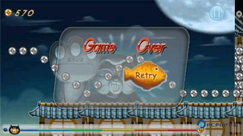 6、如果不小心掉下去了,游戏会直接结束,可以点击“Retry”继续挑战。