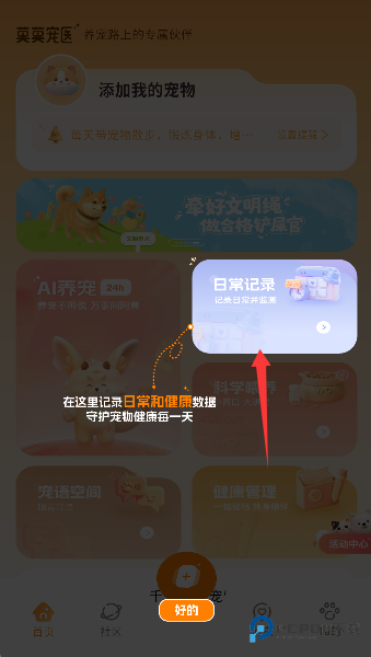 1、点开日常记录,就像给毛孩子开了本健康日记,每天的精神头和便便形状都得记上一笔,堪比贴身小管家。