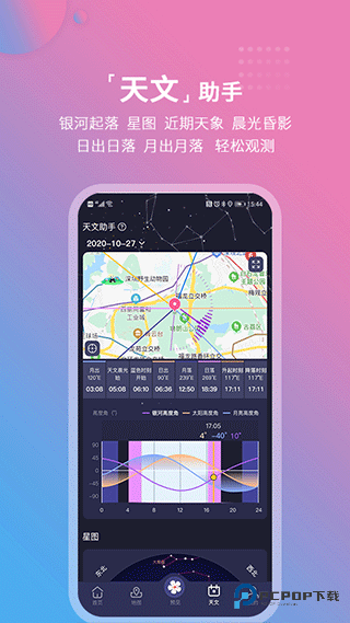 2、电子气象地图,打开地图的话则可以在地图上观察最佳的观星机位以及拍照机位