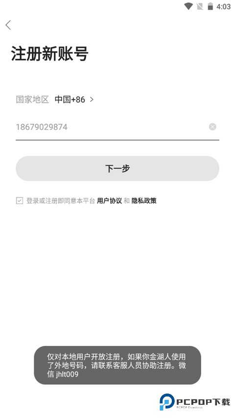 4、输入手机号、验证码即可注册成功。ps:该程序仅对本地用户开放注册,小编不是,所以无法注册哦。