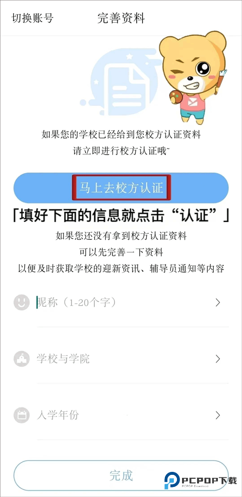 点击进入 “校方认证” 页面。