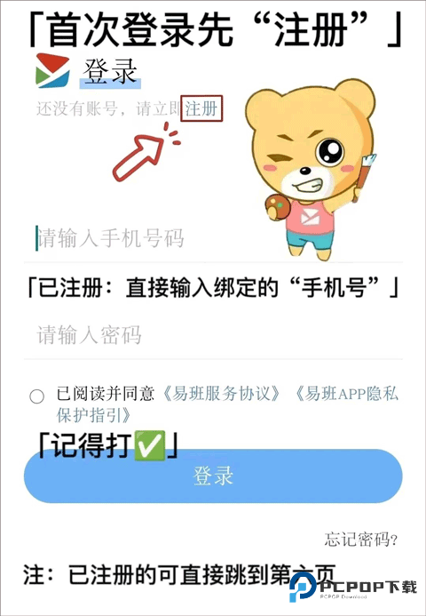 1、打开易班 App 的登录界面,一眼就看到右上角有个 “注册” 按钮吧?点它进去开账号。