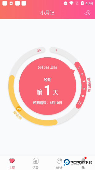 2、设置搞定了,直接跳到主页看看呗。哇,这里会清晰地展示你的月经期分布在哪儿,还有那些容易怀孕的日子在哪段时间,一眼就能掌握整体情况,设计得好贴心!