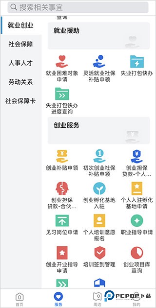 社保卡服务、社保卡信息、工作更新、进度查询、挂失服务、手机号修改、申请事项、人员及人才。
