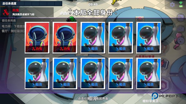 扮演其他角色?目标各不相同:船员需完成任务或清光内鬼,小丑得靠演技被票出,幸存者得活到最后... 跟着你的身份目标走就对!