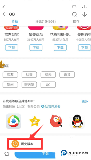 3、滚动到底部区域,应用介绍或相关信息结束的地方,就能发现标着 “历史版本” 的选项啦。