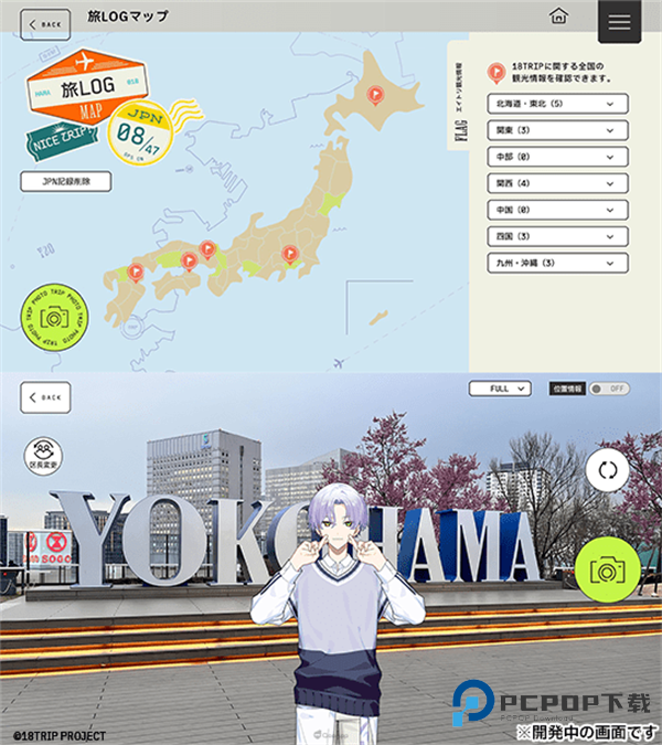 「旅行LOG 功能」将介绍游戏内出现的实际观光地,也能记录玩家在日本各地旅行的经历,更可使用AR 相机与区长一起摄影。