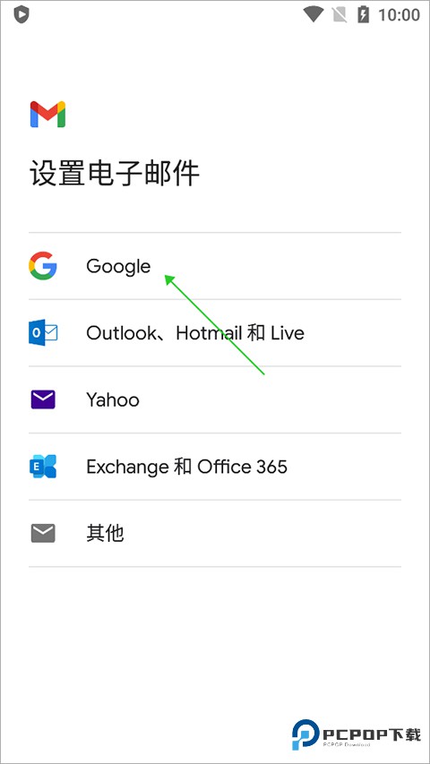 而后在打开的设置电子邮件页面中选择第一种,即Google,
