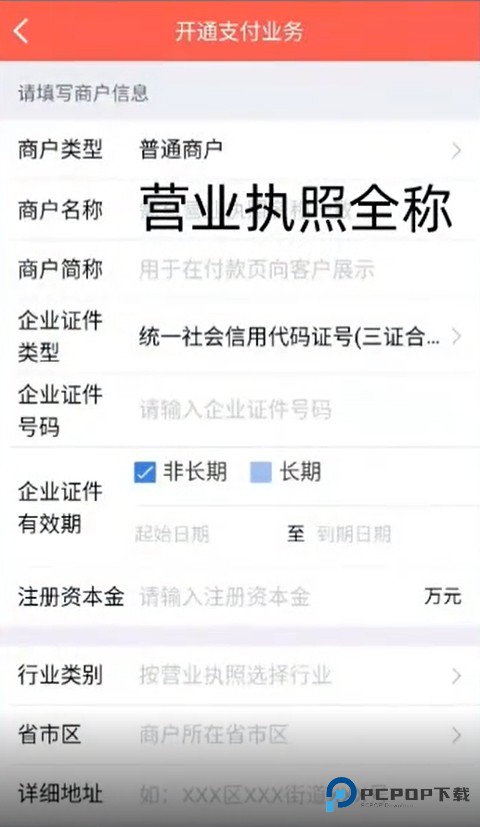 3、在填写信息时商户名称是营业执照上面的全称,不能填写简称