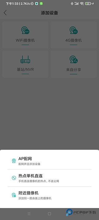 2、登录进入 App 主界面,找到并点击「+」或「添加设备」按钮。选择要添加的设备类型「4G/5G 摄像机」。