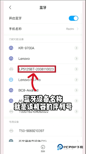 2、打开蓝牙等待匹配,屏幕会弹出设备的序列号,动动手指点一下它就行。