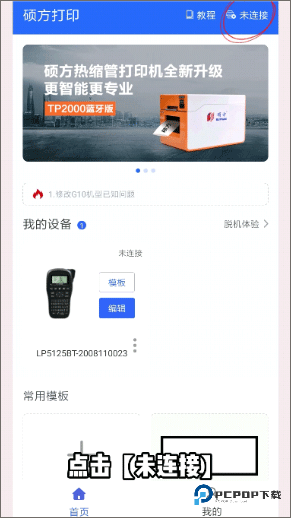 3、启动硕方打印 app 来到主页面,瞅见右上角的 “未连接” 按钮?果断点下去。