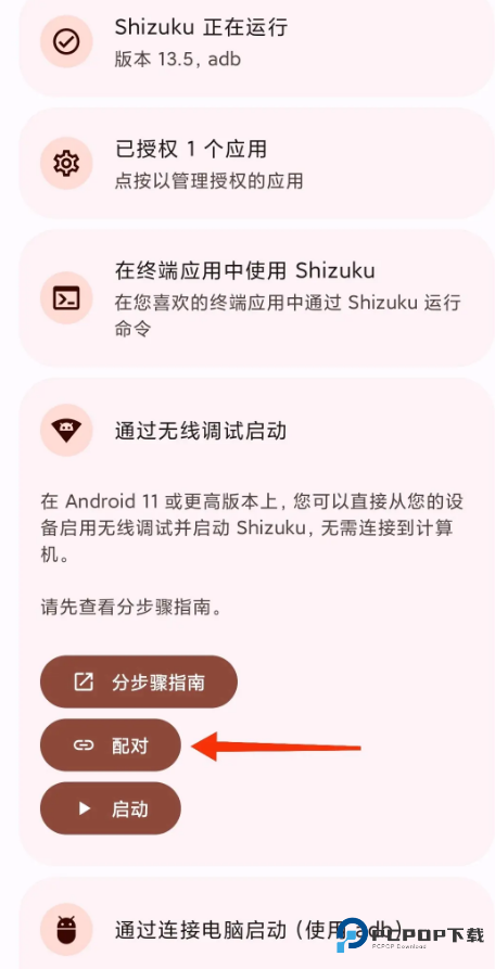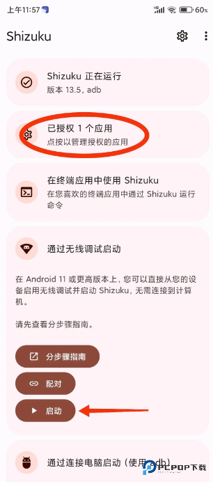 4、并在通知栏Shizuku选项中输入配对码,即可完成配对
