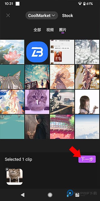 3、在打开的相册中选择视频或者照片文件,之后点击下一步