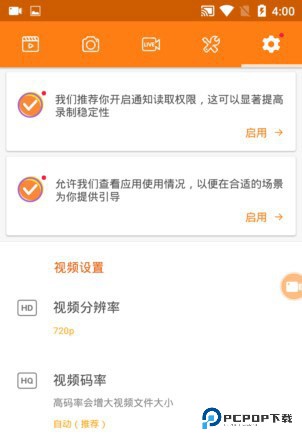 7、设置完成后,开启悬浮窗,就可以一键录屏啦。也可以在视频选项卡下,点击【录制】按钮,开始录制工作;