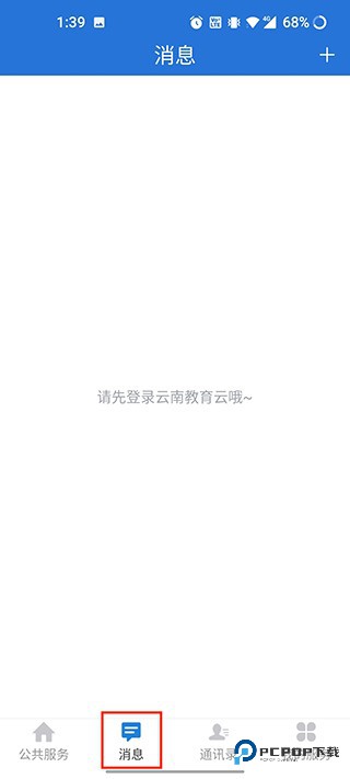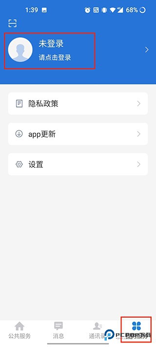 整个界面一共四个部分:公共服务、消息、通讯录、我的服务