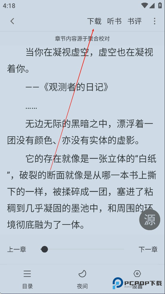 进入阅读界面之后,点击屏幕中央唤起功能键,然后点击下载