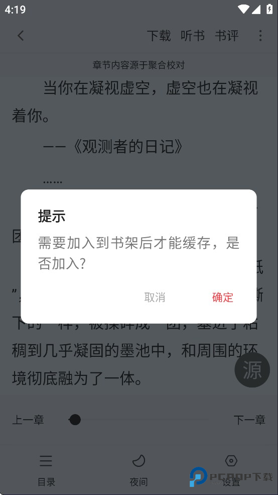 需要先将小说加入到书架才可以下载