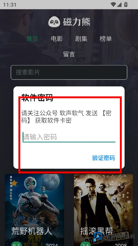 2.会出现需要卡密弹窗,直接输入卡密“软声软气”,点击验证密码