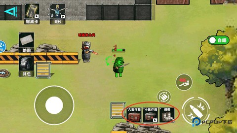 1、如果被敌人攻击受伤掉血了,可以通过打包来回血,有大医疗箱、小医疗箱、绷带可以使用。