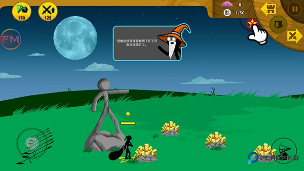 3、游戏初期,我们只有两种兵种,矿工和棍棒手,矿工可以通过开采矿石的方式来为我们带来经济,不过要注意的是,矿工是非常脆弱且会被敌方攻击的,所以一定要造一些士兵来保卫他们。