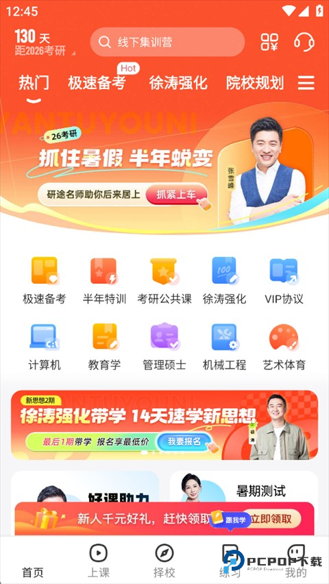 学院规划方面的张雪峰、政治方面的徐涛、英语方面的涂浩民、数学方面的杨超等知名教师团队全程支持。