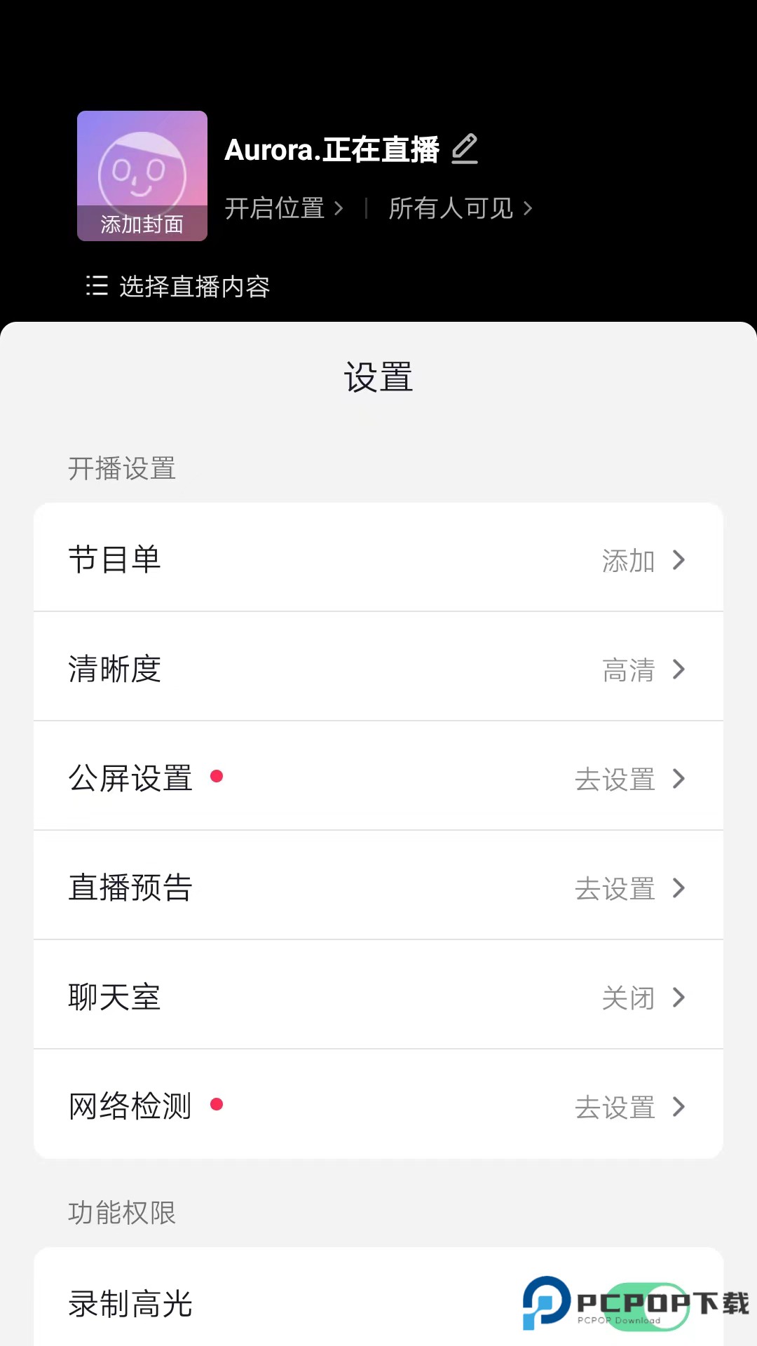 4、在设置栏目,可以提前做好节目单、清晰度、公屏等直播间的相关设置,