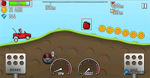 在登山赛车1中,玩家将驾驶自己心爱的赛车,在油量耗尽或是车辆损坏前抵达终点,玩家的油量消耗越少、损坏越轻,得分与挣取的金币就越多,同样的,玩家也可以在赛道上做出炫酷的特技来取得额外加分,但是倘若赛车损坏,那将得不偿失。
