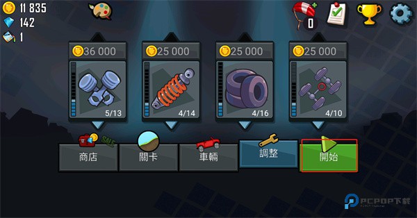 2、在开始前你还可以选择花费游戏金币来提升车的性能,然后点击开始进入游戏游玩。