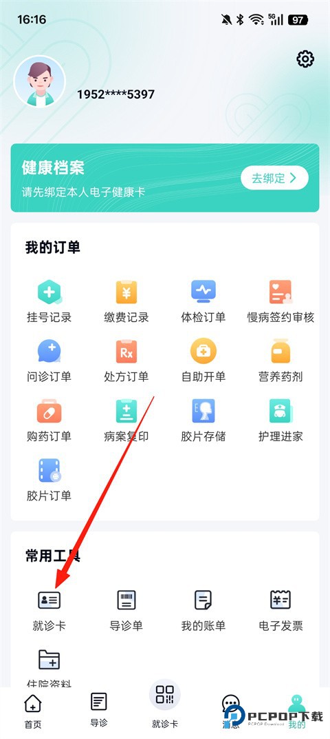 2、然后点击【就诊卡】