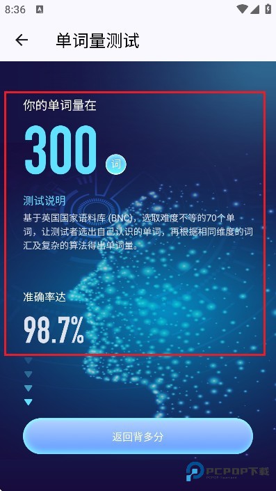 5、系统会根据测试情况自动生成详细结果,清晰呈现词汇掌握状况。