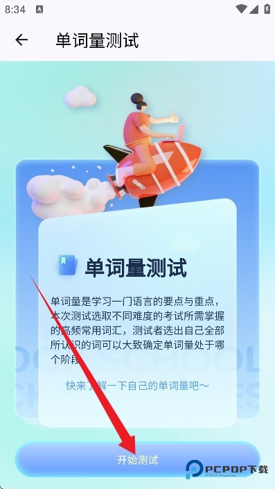 3、任意选择一项功能点击进入,以单词量测试为例,点击对应按钮就能即刻开始测试;