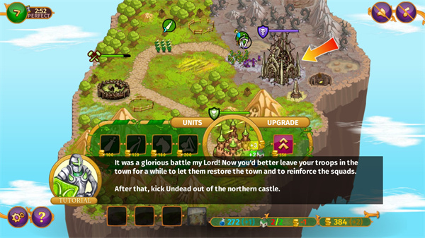 以关卡模式开始,玩家在游戏中将领导3个国家之一,每个国家有5种小队,3种要塞和魔法。在这期间玩家需要召集各路兵马,组建属于自己的军队与其他玩家进行对战,在开始游戏之前玩家需要规划好路线开始挑战,而一个好的阵容往往可以取到意想不到的效果,完美利用阵容去消耗敌人有生力量,自由征服与冒险中最终成为国王。