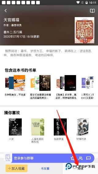 3、这时就来到了小说的详情介绍页面,然后我们在点击右下角的“阅读”。
