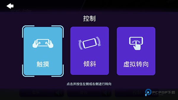 5、控制方式共有三种,分别是触摸、倾斜和虚拟转向。