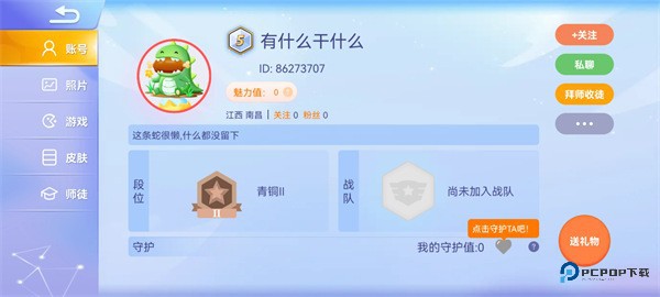 5、关注选定的朋友,可以显示该好友的游戏主页。